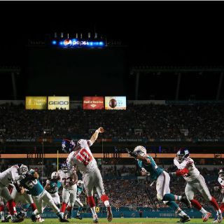MIAMI, FLORIDA (15/DIC/2015).- El mariscal de campo Eli Manning aprovechó las facilidades que le dio la defensiva de Delfines de Miami (5-8) para conectar cuatro pases de anotación y llevara Gigantes de Nueva York (6-7) a un triunfo de 31-24, como visitante en el Sun Life Stadium de esta ciudad.