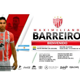 Barreiro, de 31 años de edad, proviene del conjunto ecuatoriano Delfín, con el que consiguió marcar 26 dianas dentro de la Liga en 2016.