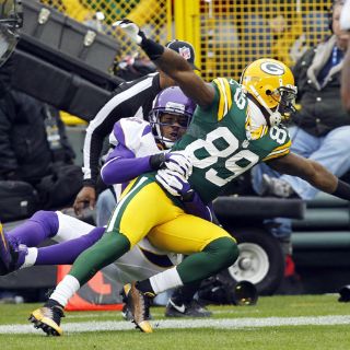 GREEN BAY, WISCONSIN (02/DIC/2012).- James Starks registró el primer touchdown por tierra de Green Bay en casi dos meses, Morgan Burnett interceptó dos pases de Christian Ponder y los Empacadores contrarrestaron un magnífico día de Adrian Peterson para llevarse una victoria de 23-14 sobre los Vikingos de Minnesota.