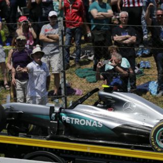 Cuando el británico trataba de superar de nuevo a Rosberg, se vio obligado a apartarse hacia el césped de un lateral de la pista, lo que le hizo perder el control de su monoplaza, golpeando por detrás el vehículo de Rosberg.