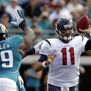 JACKSONVILLE, FLORIDA (27/NOV/2011).- Matt Leinart sufrió una lesión en el hombro que opacó la victoria 20-13 alcanzada el domingo por los Texanos de Houston sobre los Jaguares de Jacksonville.