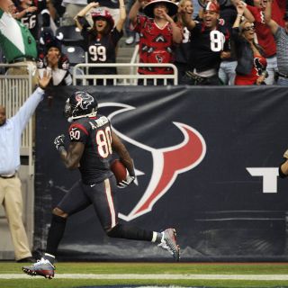 HOUSTON, TEXAS (18/NOV/2012).- Andre Johnson atrapó un pase de Matt Schaub y avanzó 48 yardas para anotar el touchdown de la victoria en tiempo extra y los Texanos de Houston vencieron el domingo 43-37 a los Jaguares de Jacksonville.