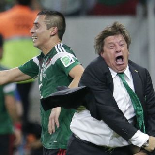 Miguel Herrera festeja, se abraza con sus jugadores y ya con la conciencia de haber conseguido el pase a octavos se planta frente a las cámaras para dar sus primeras palabras tras la victoria 3-1 ante Croacia.
