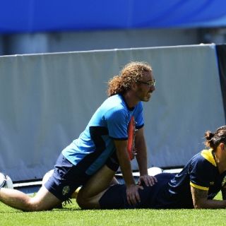 No estaba previsto que saliera al campo de entrenamiento del Dinamo de Kiev, pero los responsables de la selección decidieron que lo hiciera porque se trataba de una sesión abierta y había unos 1.500 seguidores suecos en la grada.