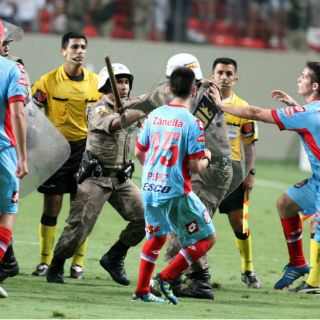 Tras la victoria del Atlético Mineiro por 5-2 ante el Arsenal, la policía de Minas Gerais chocó con los jugadores argentinos en el campo de juego del estadio Independencia de Belo Horizonte.
