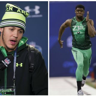 CHICAGO, ILLINOIS (30/ABR/2015).- Shane Ray y Randy Gregory, dos jugadores que podrían auxiliar a la defensiva de cualquier equipo de la NFL, no pudieron ayudarse a sí mismos de cara
