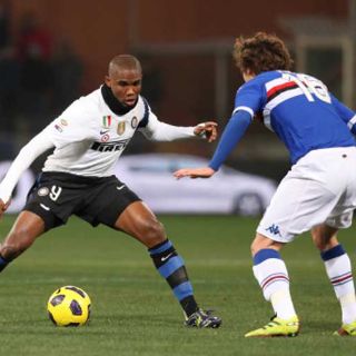 GÉNOVA, ITALIA (27/FEB/2011).- Inter de Milán se impuso 2-0 en su desplazamiento a Génova al campo de juego de la Sampdoria (14º), este domingo en el marco de la 27ª jornada de la Serie A del fUtbol italiano, y se puso segundo provisional en detrimento del Nápoles en la tabla de clasificación que lidera el Milan.