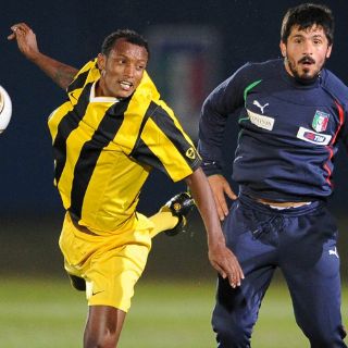 CIUDAD DEL CABO, SUDÁFRICA (12/JUNIO/2010).- La selección de Italia, defensora del título, hizo prácticas de puntería ayer en un partido de ensayo frente al equipo local Guateng All Stars, al que endosó un concluyente 6-0 en el campo del Southdowns College donde habitualmente se entrena el conjunto transalpino.
