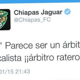 Jaguares fue sancionada por la Comisión Disciplinaria con una multa de dos mil días de Salario Mínimo (140 mil 200 pesos), tras los mensajes publicados en su cuenta de Twitter, donde llamó "ratero" al árbitro Paul Enrique Delgadillo Haro.