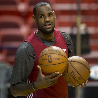 MIAMI, FLORIDA (20/JUN/2012).- El alero LeBron James volvió al American Airlines Arena junto a sus compañeros de los Heat de Miami para preparar el quinto partido de las finales de la NBA que jugarán este jueves contra los Thunder de Oklahoma City, y dijo estar recuperado de los calambres que sufrió en las piernas la noche anterior y que le impidieron concluir el cuarto encuentro.