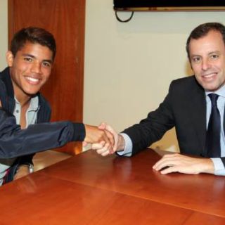 Acompañado del presidente Sandro Rosell, el vicepresidente Josep Maria Bartomeu y el director deportivo, Andoni Zubizarreta, entre otros, Dos Santos ha evidenciado su felicidad por el nuevo contrato, pero ha recordado que "no todo ha sido de color de rosa" en el club.