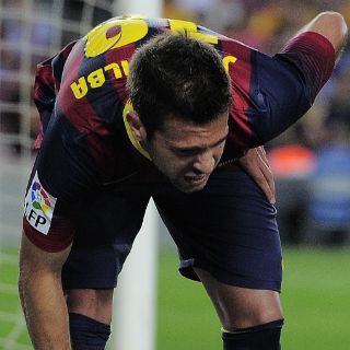 BARCELONA, ESPAÑA (15/SEP/2013).- El defensa internacional español del Barcelona Jordi Alba estará tres semanas de baja, anunció el club catalán este domingo, después de que sufriera una rotura fibrilar en el bíceps femoral en el partido del sábado ante el Sevilla (victoria por 3-2).