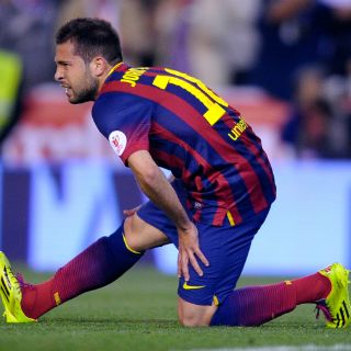 BARCELONA, ESPAÑA (17/ABR/2014).- El defensa Jordi Alba y el delantero Neymar da Silva estarán unas cuatro semanas de baja después de caer lesionados en la final de la Copa del Rey que el