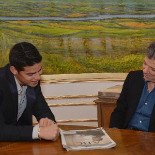 " James lo ve uno en España, en cualquier país europeo o latinoamericano, es el colombiano hoy más famoso, sin duda alguna. Es un orgullo. Pero también tenemos otros colombianos que se están luciendo: (Carlos) Bacca y (Radamel) Falcao", agregó el presidente.
