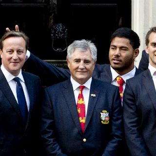 Cameron y el equipo posaban para una foto juntos, al término de una visita a su residencia para celebrar la victoria de los Lions sobre Australia en julio, cuando Tuilagi alargó el brazo e hizo el signo de la victoria justo detrás de la cabeza del primer ministro.
