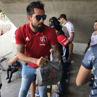 GUADALAJARA, JALISCO (20/SEP/2017).- Jugadores de Chivas y Atlas se unieron en persona a los esfuerzos de acopio de sus respectivos equipos.