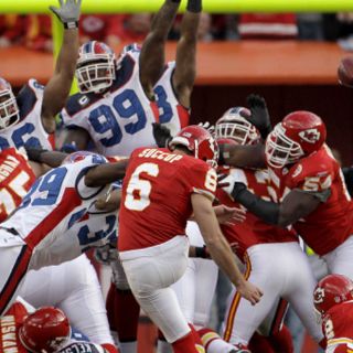 KANSAS CITY MISSOURI (31/OCT/2010).- Ryan Succop conectó el domingo un gol de campo de 35 yardas cuando terminaba el tiempo extra para llevar a los Jefes de Kansas City a un triunfo de 13-10 sobre los Bills de Buffalo, que aún no conocen la victoria esta temporada.