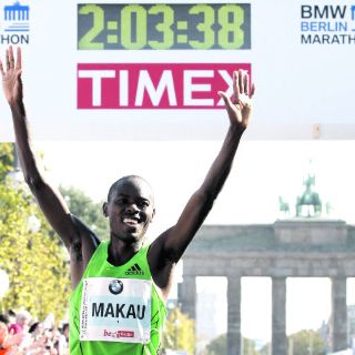 BERLÍN, ALEMANIA (26/SEP/2011).- El keniano Patrick Makau pulverizó el domingo el récord mundial de maratón, al terminar la carrera de Berlín en dos horas, tres minutos y 38 segundos. Makau corrió sólo los últimos 12 kilómetros y batió el tiempo anterior de 2:03:59, establecido por el etíope Haile Gebrselassie hace tres años en el mismo recorrido.