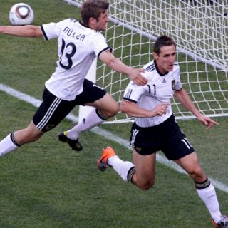 Klose apeló a su olfato de goleador ante un saque largo del arquero Manuel Neuer, que sorprendió mal parados a los últimos hombres de Inglaterra, John Terry y Matthew Upson, a quienes les ganó la espalda. Resistiendo la carga de Upson, Klose alcanzó a pellizcar el balón ante la salida de David James y lo clocó junto a un palo.