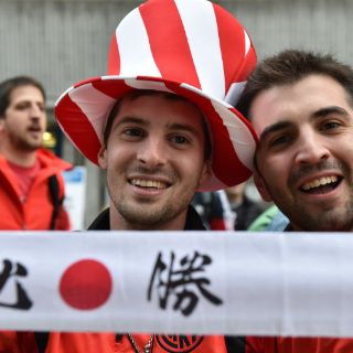 Con la policía japonesa desconcertada por el inesperado agrupamiento de miles de personas, la hinchada enloqueció cuando apareció el micro.