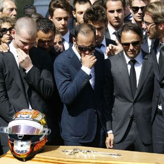 Solo la familia y sus allegados entraron en el edificio para una ceremonia íntima. Sobre la explanada adyacente, un centenar de personas se acercaron a rendir tributo a Bianchi, primer piloto de Fórmula 1 que muere en competición desde el fallecimiento del triple campeón mundial el brasileño Ayrton Senna en mayo de 1994.