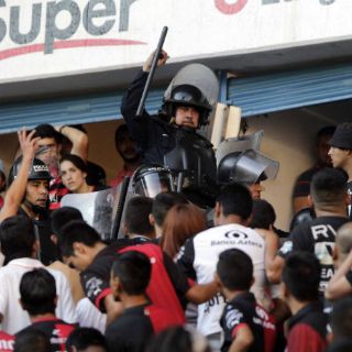 El momento se volvió un caos. Decenas de aficionados Rojinegros comenzaron con el desorden. Y le siguieron más compañeros de éstos. De repente, la situación rebasó la seguridad privada del estadio que tuvieron que intervenir elementos de la policía municipal.