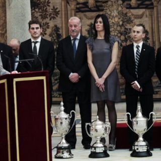 El seleccionador nacional, Vicente Del Bosque, y el capitán español, Iker Casillas, recibieron el premio de manos del monarca, quién abrazó y saludó cariñosamente a ambos.