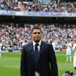 MADRID, ESPAÑA (02/ABR/2011).- El ex atacante brasileño del Real Madrid Ronaldo, retirado en febrero, fue aclamado este sábado en el estadio Santiago Bernabeu de la capital española, antes de hacer el saque de honor en el partido Real Madrid-Sporting de Gijón, en la jornada 30 de la Liga.