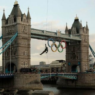 Tras pasar frente al singular Puente de Londres, decorado con unos grandes aros olímpicos para la ocasión, la llama descendió del helicóptero militar en un recipiente amarrado al cinturón de un soldado de la Marina Real británica, que se descolgó del aparato con una cuerda.