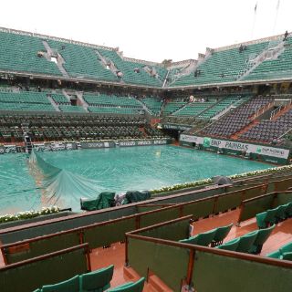 PARÍS, FRANCIA (30/MAY/2013).- La persistente lluvia en París obligó hoy a anular los 23 encuentros que quedaban por disputarse en la quinta jornada de Roland Garros, incluido el duelo de segunda ronda entre el vigente campeón, el español Rafael Nadal, y el checo Martin Klizan.