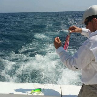 Tras cuatro horas de navegación, el panorama era desolador. El capitán Poncho Partida abandona su posición en la torre de mando y baja a la zona de pesca para ajustar las cañas y entonces sucede: la primera "acción" del día.