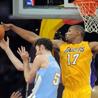 LOS ÁNGELES, CALIFORNIA (31/DIC/2011).- La vuelta del pívot Andrew Bynum no pudo ser más espectacular y oportuna para los Lakers de Los Ángeles que se apoyaron en su gran juego individual y ganaron 92-89 a los Nuggets de Denver en el último partido de ambos equipos durante el año 2011.