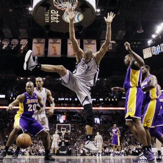 SAN ANTONIO, TEXAS (21/ABR/2013).- El veterano escolta argentino 'Manu' Ginóbili demostró una vez más su clase y fue el líder que guió a los Spurs de San Antonio a la victoria frente a Los Ángeles Lakers (91-79) en el primer partido de la eliminatoria de la fase final de la Conferencia Oeste.