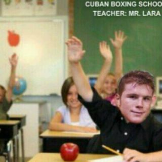 En su cuenta de Twitter, Lara publicó un meme donde se aprecia al "Canelo" en un salón de clases, acompañado de un mensaje que dice: Julio 12 MGM Grand "#CubanBoxingSchool".