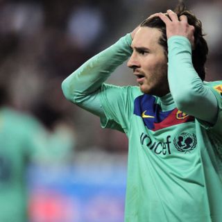 El argentino Lionel Messi estuvo en todo momento presionado por más de dos defensas, lo que le impidió aumentar su cuenta personal de goles.