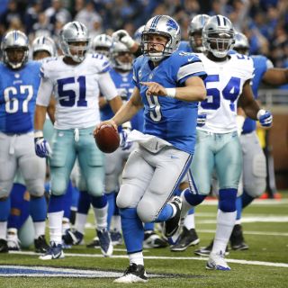DETROIT, MICHIGAN (27/OCT/2013).- Matthew Stafford se lanzó encima de un montón de jugadores de línea a fin de avanzar la yarda que le faltaba para anotar, a 12 segundos del final, y los Leones de Detroit concretaron así una remontada increíble para superar el domingo 31-30 a los Vaqueros de Dallas.
