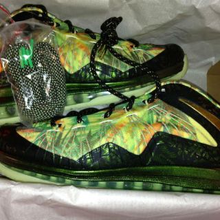 Los nuevos zapatos, decorados con detalles de plantas, fueron elaborados por la marca Nike, y en ellos se pueden apreciar las leyendas ''2-Time Champion'' (dos veces campeón) y las fechas a las que pertenecen dichos logros; uno, en la temporada 11-12 y otro en la 12-13; ésta última aún sin conquistar, pues esta noche se disputa el juego seis de las Finales de la NBA entre el Heat y los Spurs.