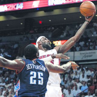 Antes James también había anotado con 10 segundos por jugarse los dos tiros desde la línea de tiros libres que pusieron el parcial de 100-97 después que el base Kemba Walker un segundo antes anotó un triple y colocó a los Bobcats a un punto del empate (98-97).
