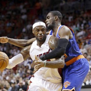 MIAMI, ESTADOS UNIDOS (07/ABR/2014).- LeBron James encestó 38 puntos, Mario Chalmers añadió 15 y el Heat de Miami sobrevivió una ráfaga de triples de J.R. Smith para vencer el domingo 102-91 a los Knicks de Nueva York, cuyas aspiraciones de clasificarse a los playoffs sufrieron un duro golpe.