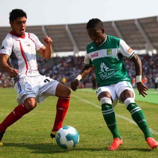 PUEBLA, PUE. (02/MAY/2012).- Con tres goles de Jair García en los 45 minutos iniciales, Lobos BUAP tuvo en la lona al León, que recompuso el camino en el segundo tiempo para rescatar un 3-3 de visita en la final de "ida" del Torneo Clausura 2012 de la Liga de Ascenso.