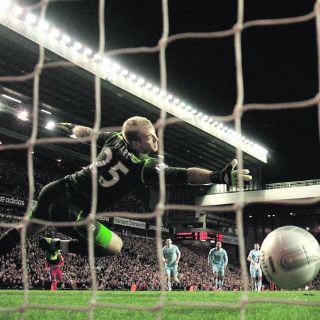 Liverpool igualó con un penal, por una mano de Richards tras un disparo de Agger, que fue convertido por Steven Gerrard (40’).