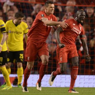 LIVERPOOL, INGLATERRA (14/ABR/2016).- El Liverpool, gracias a un tanto del defensa croata Dejan Lovren en el tiempo de descuento de la segunda mitad, se impuso este jueves en un emocionante encuentro al Borussia Dortmund (4-3) y selló su pase a semifinales de la