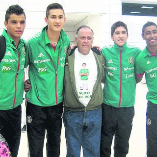 GUADALAJARA, JALISCO (11/NOV/2013).- Los acordes de Guadalajara y el son del mariachi, desesperezó la madrugada de ayer la Sala de Llegadas Nacionales del Aeropuerto Internacional Miguel Hidalgo, que se llenó de música y algarabía para recibir a los cuatro jugadores de Chivas que llegaron de su aventura Mundialista en los Emiratos Árabes Unidos, donde consiguieron el Subcampeonato de la categoría.