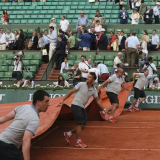 Con 6-3, 6-3, 5-7 y 3-3 a favor de Djokovic, se anunció por megafonía la interrupción. Entonces el público salió de la pista Philippe Chatrier para cubrirse a la espera de que se pudiera reanudar unos minutos más tarde.