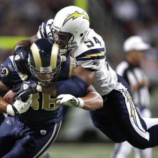 SAN LUIS, MISOURI (17/OCT/2010).- James Hall, Chris Long y Larry Grant lograron dos capturas de quarterback cada uno y los Carneros de San Luis apabullaron a la mejor ofensiva de la NFL al triunfar el domingo por 20-17 ante los Cargadores de San Diego.