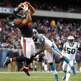 Chicago (6-1) se plantó en la yarda 38 de Carolina luego de que Brad Nortman pateó un despeje de seis yardas y Jay Cutler conectó con Kellen Davis un pase de anotación de 12 yardas con menos de siete minutos en el reloj.