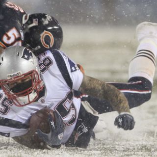 CHICAGO, ILLINOIS (12/DIC/2010).- Tom Brady lanzó para avance de 369 yardas y dos anotaciones, y los Patriotas de Nueva Inglaterra aseguraron su octavo pase a la postemporada en 10 años con una victoria aplastante de 36-7 sobre los Osos de Chicago en un día borrascoso, helado y con nieve.
