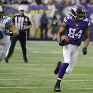 Cordarrelle Patterson registró dos anotaciones más, incluida una atrapada en la zona de anotación en el cuarto período para asegurar la ventaja definitiva, y los Vikingos de Minnesota superaron el domingo 14-13 a los Leones de Detroit, en el último partido en el Metrodome después de 32 temporadas.