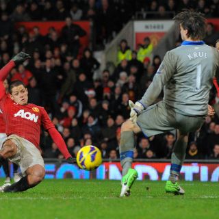 9. LIGA PREMIER 24 de noviembre (Victoria 3-1 sobre Queens Park Rangers): El mexicano selló el triunfo rojo al recibir entre dos defensas un pase de Anderson, para acomodarse a su pie derecho y definir con un toque a media altura al m.71 del partido. - Entró de cambio al m.58.