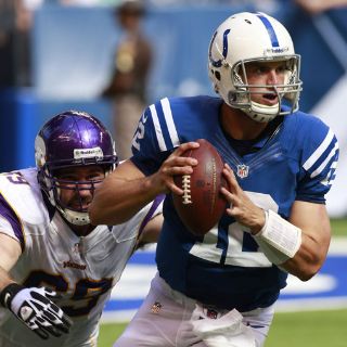 El quarterback novato lanzó un par de pases para touchdown y preparó el gol de campo de 52 yardas de Adam Vinatieri con ocho segundos por jugar que dio el triunfo a los Potros de Indianápolis por 23-20 sobre los Vikingos de Minnesota.